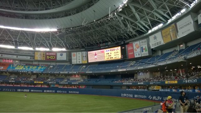 今回はそんなに差を感じることが出来ませんでしたね…。試合はペーニャ選手のセンターへの特大ホームランが凄かったです。野球観戦もケータイも楽しめた雨の日の京セラドーム大阪でした。
