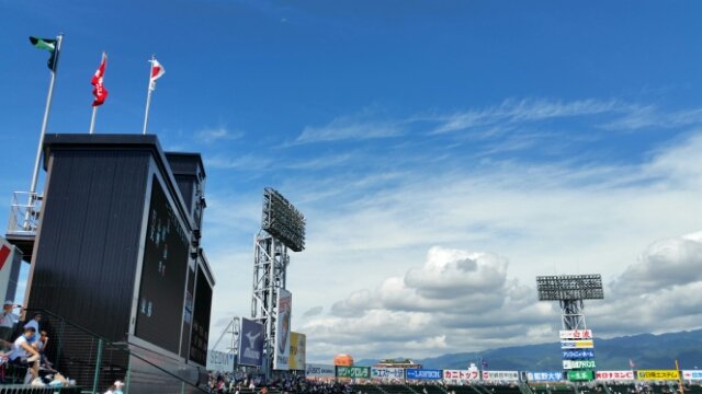 甲子園の特徴的な銀傘(ぎんさん)の下の影になっている部分が明らかに明るく写っています。バックネット周辺もオフと…