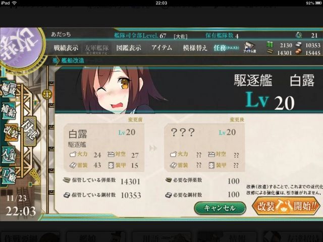 僕の艦隊では「時雨」に続いて大人びて帰って来ました。また工廠で何かあったんでしょうか…