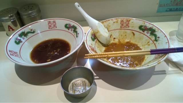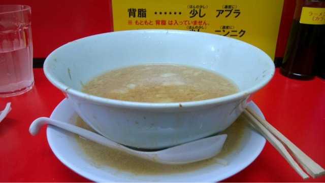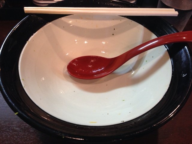 スープをこれから飲もうというところですが既に溢れたスープがかなりの量になっていました。今回久しぶりに「たくのじ」の息吹を感じることが出来た「影郎」、皆さんも日本橋に来られた時は是非とも行ってみては如何でしょうか?ごちそうさまでした!