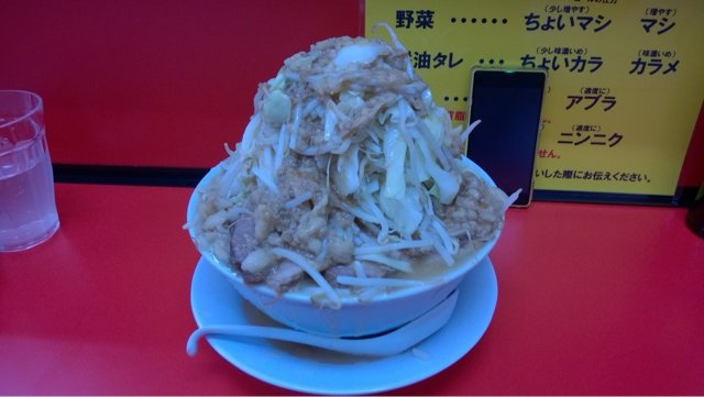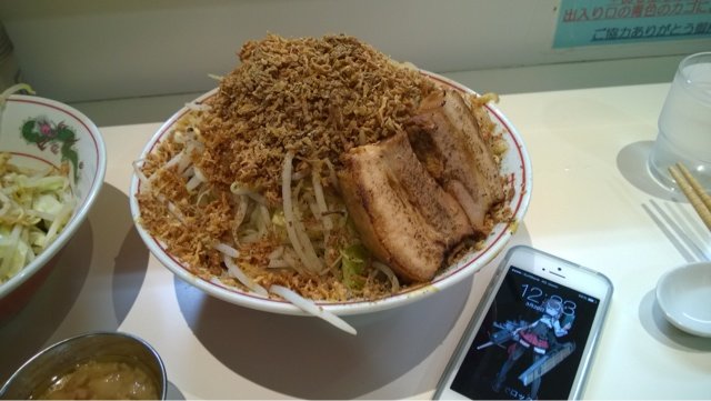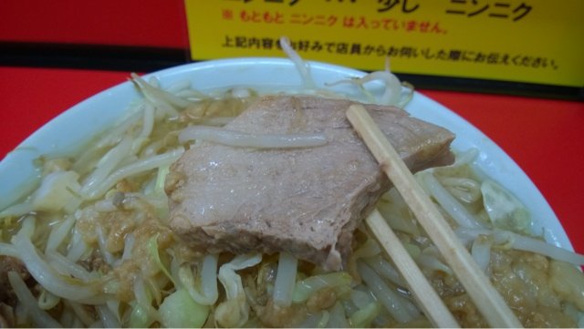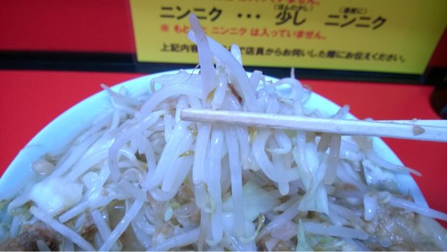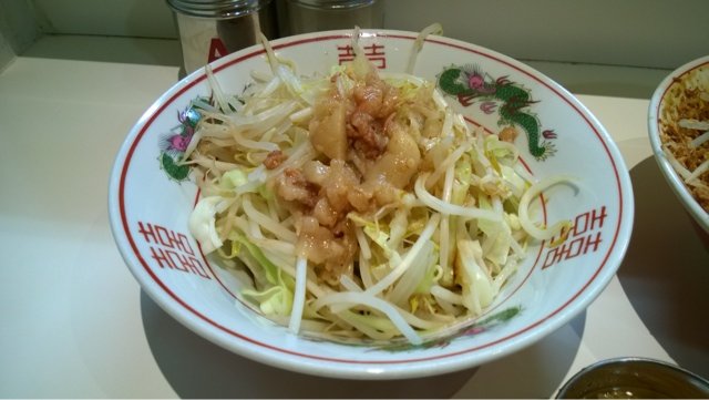 ヤサイです。もやしとキャベツ、シャキシャキしてます。かなり脂っこい筈なのにヤサイを沢山食べることが出来る不思議な食べ物ですね。