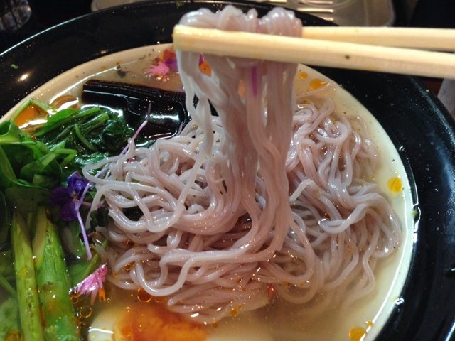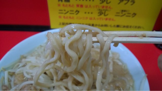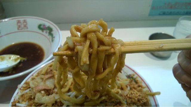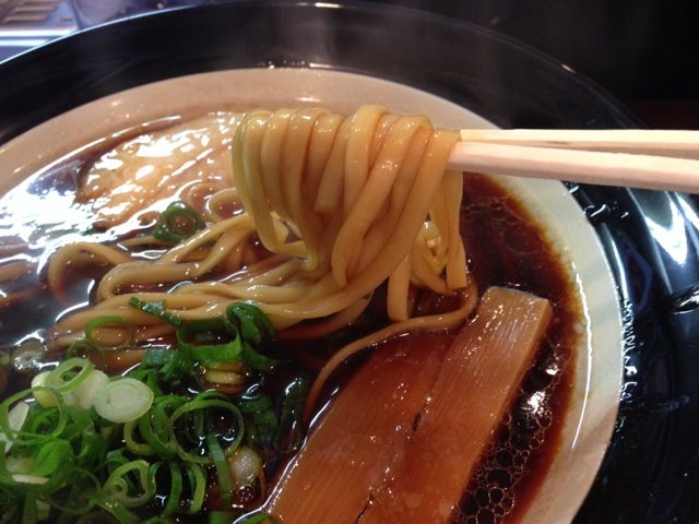 麺は太麺で噛み応えのあるものですが、しっかり噛んで味わうもよし、ズルズルと飲み込むもよし、といった意外なバランスの麺になっています。